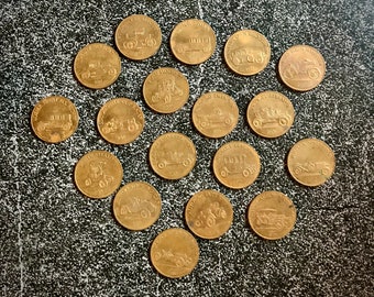 Antique Car Coin Collection Series 1 from The Franklin Mint 25 Coins Pre-Owned. The Bronze set consisted of 26 millimeter proofs. Each token has a car its name and a date.